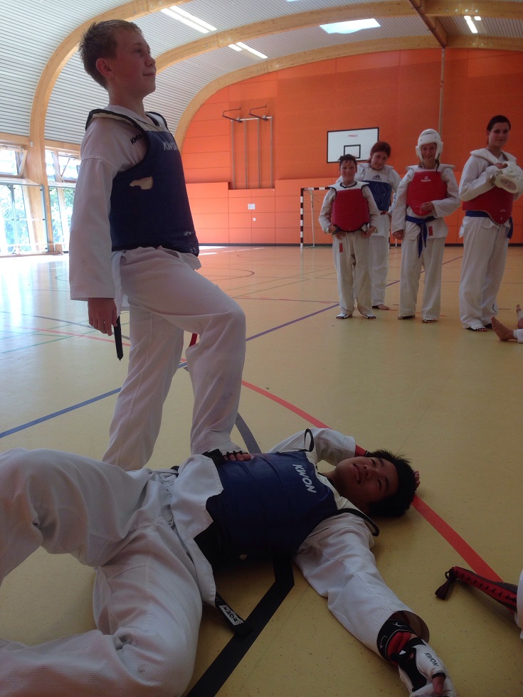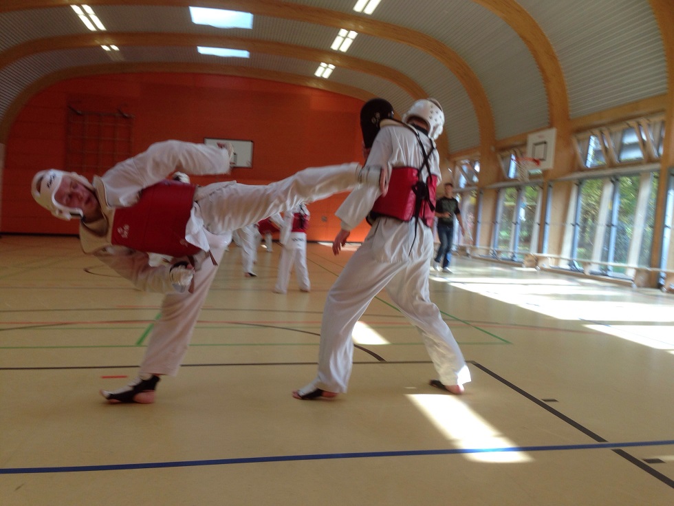 Am 13.10.2013 fand in Dresden das Kadertraining Vollkontakt unter Landestrainer Manuel Meier statt, welches zum einen dazu diente, das Turnier am Vortag zu rekapitulieren, zum anderen um die nominierten Sportler auf die Deutsche Meisterschaft der Junioren am 19.10.2013 in Bielefeld vorzubereiten. Das vierstündige Training begann mit der Erwärmung bestehend aus Seilspringen und Dehnungsübungen. Anschließend hieß es dann auch schon "Schutzausrüstung an" und es wurden partnerweise mehrere Techniken geübt und optimiert. Auch wurden Kontertechniken geübt und durch die vielen Partnerwechsel konnten die Kaderathleten die Techniken an Gegnern verschiedener Körpergröße und Kampftaktiken anwenden. Nach einigen kurzen Runden lockeren Sparrings wurden des Weiteren Kombinationen und die Reaktionsfähigkeit trainiert, auch wieder mit verschiedenen Partnern. Der Abschluss des Trainings bestand aus 45 minütigem freien Sparrings, wobei immer zwei Leute 2 Minuten lang unter möglichst realen Turnierbedingungen gegeneinander kämpften. Dazu gehörten auch kräftige Anfeuerungsrufe der nicht-kämpfenden Sportler. Nachdem jeder 3 bis 4 Gegner hatte, war das anstrengende, aber auch von sehr guter Laune geprägte Training auch schon wieder zuende. Zusammen mit der Landesmeisterschaft war es ein erfolgreiches Wochenende und wir möchten nocheinmal allen Sportlern, die an der Sachsenmeisterschaft teilgenommen haben, zu ihren Platzierungen beglückwünschen! Zudem bedanken wir uns beim TASG Dresden und beim Landestrainer Manuel Meier, die uns das Kadertraining in Dresden ermöglicht haben und wir freuen uns auf das nächste Kadertraining im Dezember in Leipzig. Eure Aktivensprecher Michele Rausch, Lukas Friedrich und Hai Dang Nguyen |